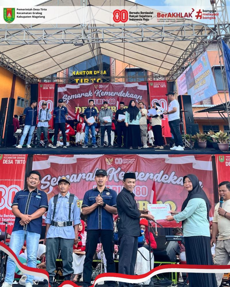 Penyerahan hadiah dilakukan langsung oleh Kepala Desa Tirto, Lilik Harlina. Dalam sambutannya, beliau menyampaikan terima kasih atas partisipasi seluruh warga dan kelembagaan desa yang telah mendukung rangkaian kegiatan. Beliau juga berharap semangat persatuan dan gotong royong yang ditunjukkan dapat terus terjaga dalam kehidupan sehari-hari.